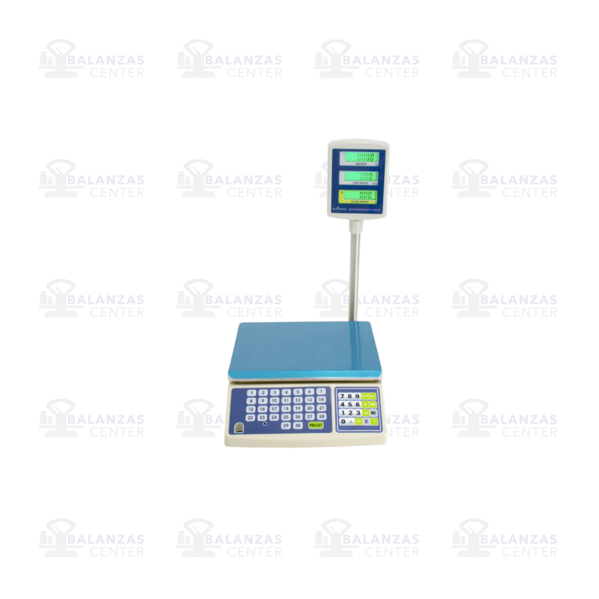 Balanza digital comercial de alta resistencia, ideal para mercados, tiendas y supermercados. Su estructura robusta y diseño ergonómico garantizan facilidad de uso y durabilidad. Incorpora bandeja de acero inoxidable removible para una limpieza rápida, pantalla LCD doble con retroiluminación verde para perfecta visibilidad, y poste de acero inoxidable para mayor estabilidad. Ofrece funciones inteligentes como cálculo automático del importe total, tara, acumulación de pesadas y 30 memorias programables para precios frecuentes. Funciona con corriente eléctrica o batería recargable de larga duración, con bajo consumo energético. Compacta, ligera y fácil de instalar, con teclado de membrana resistente y garantía de 1 año.