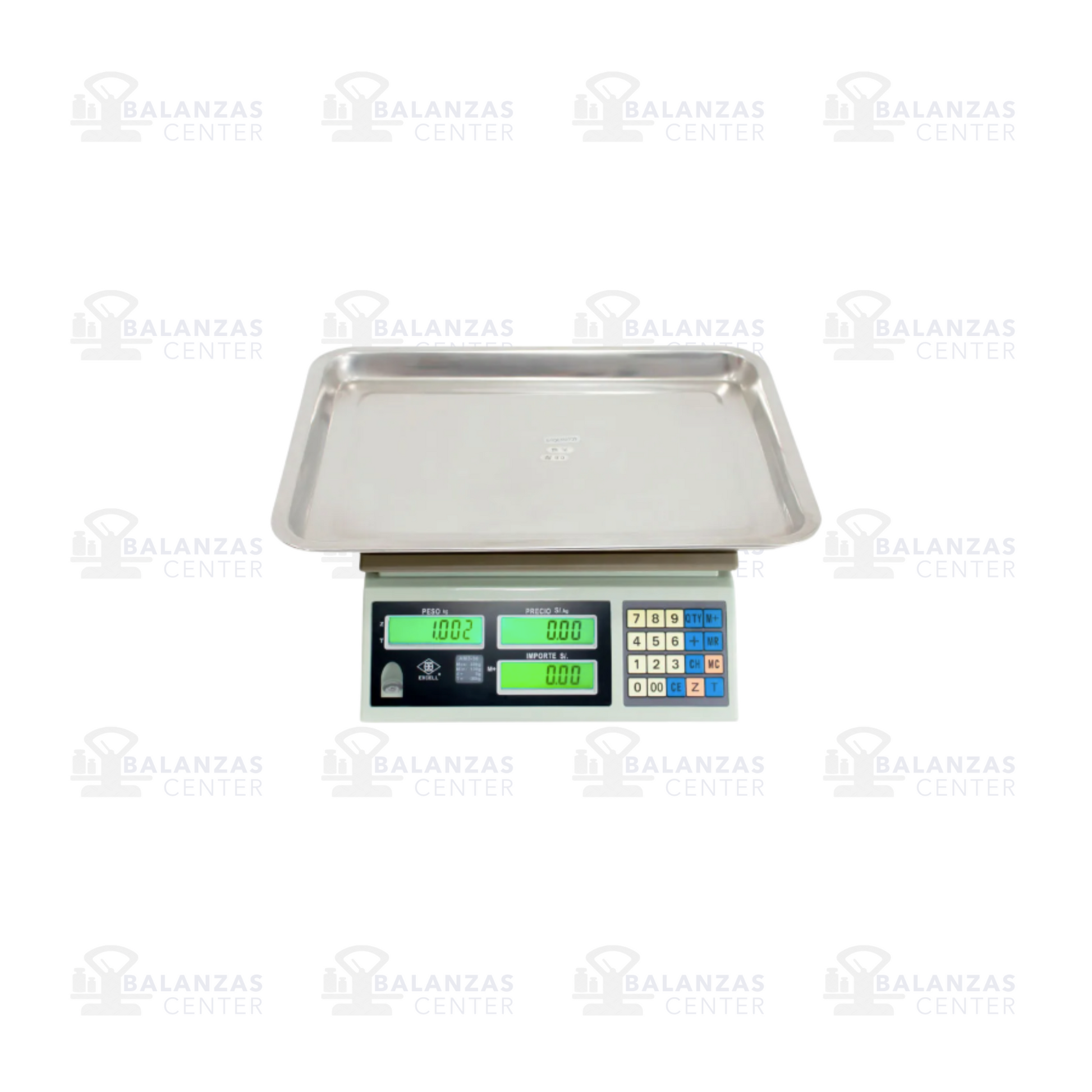 Balanza electrónica digital de mesa de alta precisión y velocidad, ideal para entornos comerciales que requieren pesajes rápidos y confiables. Equipada con seis pantallas LCD retroiluminadas y doble visualización frontal y trasera para facilitar la lectura tanto del operador como del cliente. Incluye funciones de peso, precio unitario, importe total, suma, multiplicación y acumulación de hasta 99 datos. Su teclado tipo membrana con 20 teclas permite una operación ágil y resistente. Cuenta con plato grande de acero inoxidable desmontable, nivel de burbuja para estabilidad precisa, y patas ajustables antideslizantes. Funciona en kilos, con opción de tara y ajuste a cero. Alimentación dual por corriente 220V o batería interna recargable de hasta 10 días de autonomía. Protección contra sobrepeso, fusible eléctrico, encendido antiderrame, salida RS-232 opcional y mica protectora contra líquidos, polvo y agua. Respaldo total con garantía extendida de 2 años por defectos de fábrica.