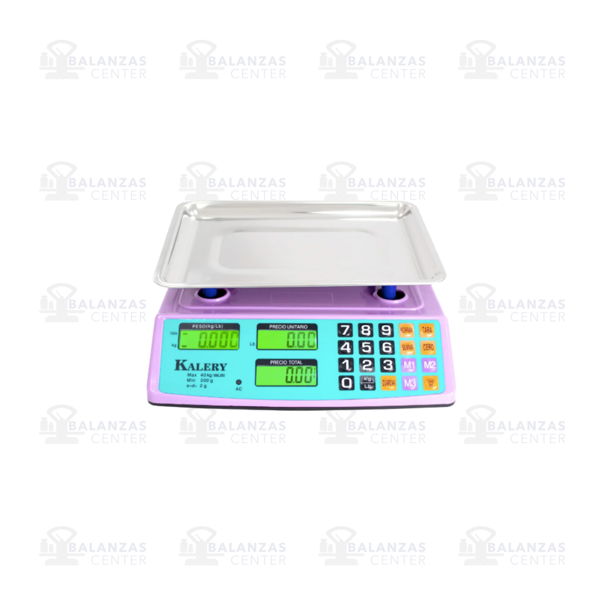 Balanza digital comercial de hasta 40 kg de capacidad, ideal para mercados y tiendas que buscan precisión y eficiencia. Cuenta con bandeja de acero inoxidable elevada que evita derrames y facilita la limpieza, carcasa de ABS ultra resistente, y diseño compacto y ligero para fácil transporte. Incorpora doble pantalla LCD retroiluminada (frontal y trasera) con dígitos grandes para lectura clara de peso, precio unitario y total. Su teclado de 24 botones a color incluye memorias M1-M3 para precios frecuentes y funciones clave como tara, cero, suma y conversión entre kilos y libras. Funciona con batería recargable de larga duración, incluye modo de ahorro de energía y apagado automático. Patas ajustables, nivel de burbuja y cubierta termoformada aseguran estabilidad, precisión y protección en todo momento. Disponible en color lila, con garantía de 1 año.