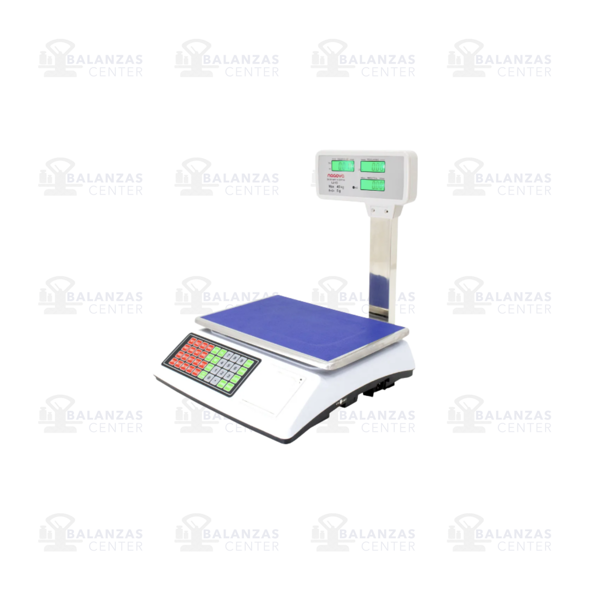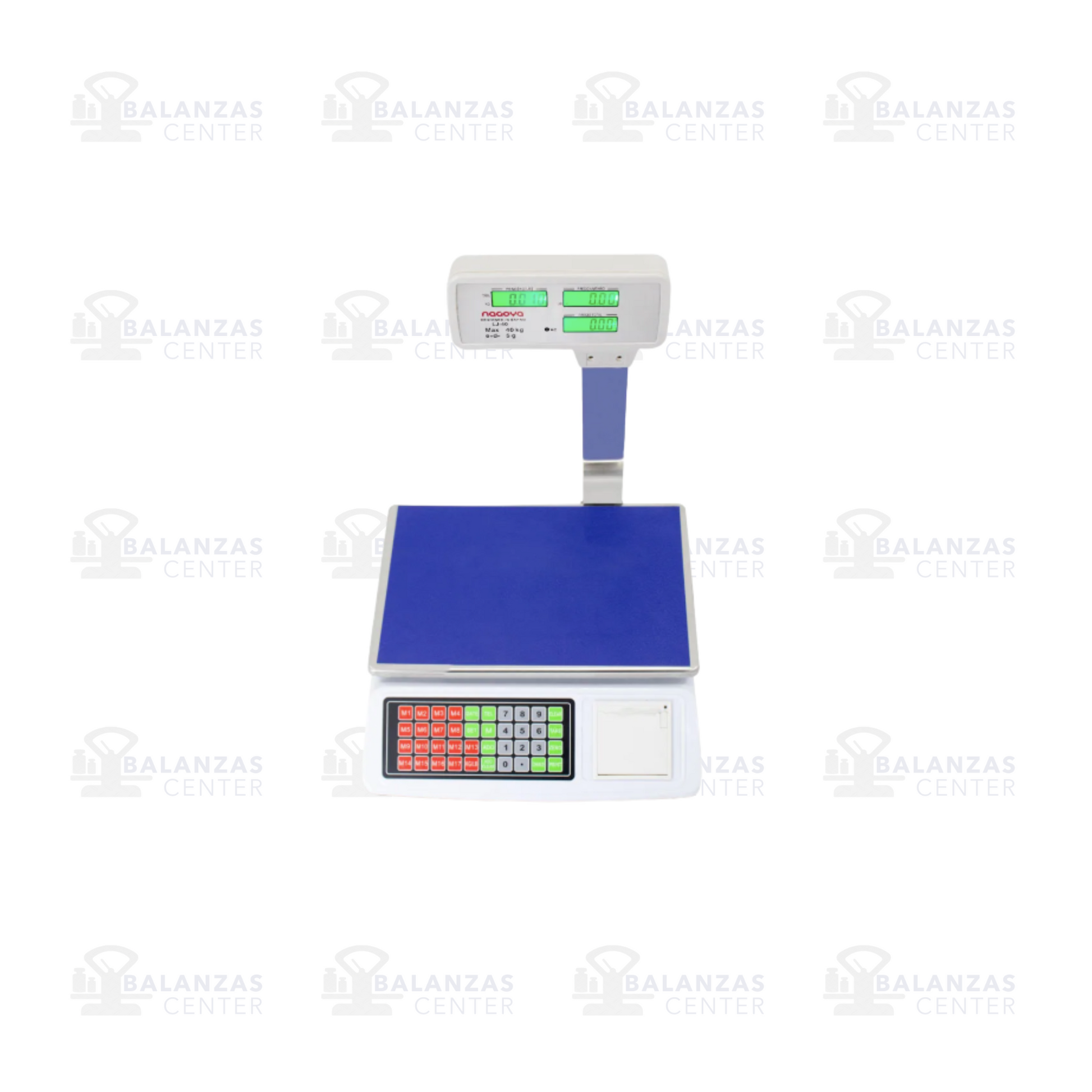 Balanza etiquetadora digital ideal para tiendas y bodegas, diseñada para ofrecer pesaje preciso y emisión rápida de tickets. Cuenta con estructura compacta y ligera, carcasa de ABS de alta resistencia y poste de acero inoxidable con pantalla elevada para mejor visibilidad. Incorpora impresora integrada con ancho de impresión de 56 mm y papel continuo, teclado PRINT para impresión directa y tecla CHANGE para dar vuelto. Su teclado numérico de 40 botones codificados por colores permite acceso rápido a 17 memorias directas programables. Ofrece 6 pantallas LCD retroiluminadas en verde con excelente contraste, cálculo automático del total, acumulación de pesadas, configuración de hora y fecha, y pantalla con indicador de batería. Incluye batería recargable de larga duración (6V/4A), patas ajustables, bandeja de acero inoxidable removible con película protectora azul, y función de apagado automático del backlight para mayor ahorro de energía. Garantía de 1 año por defectos de fábrica.